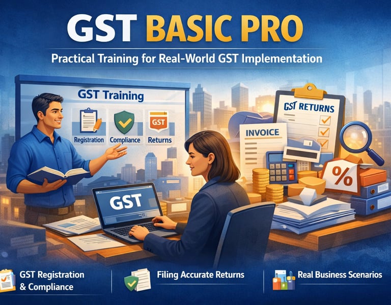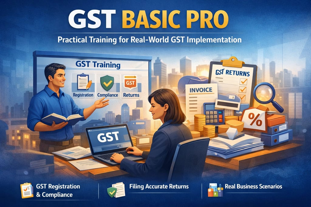 Training emphasizes hands-on execution, covering accounting entries, GST return filings, and statutory compliance through real-time scenarios and practical exercises.
